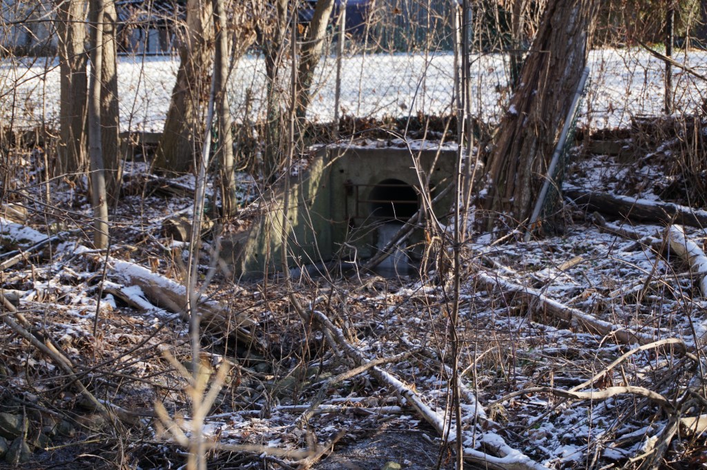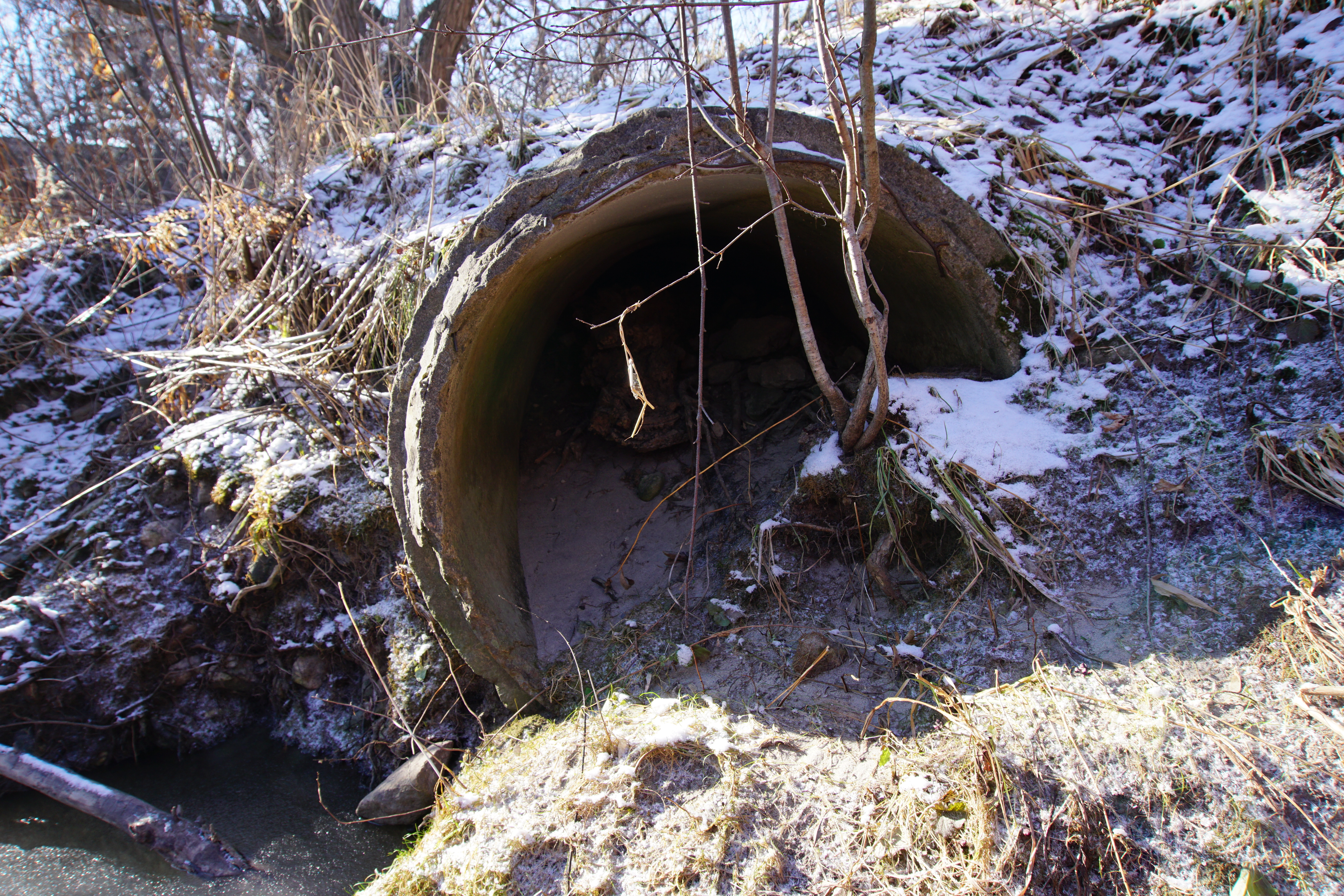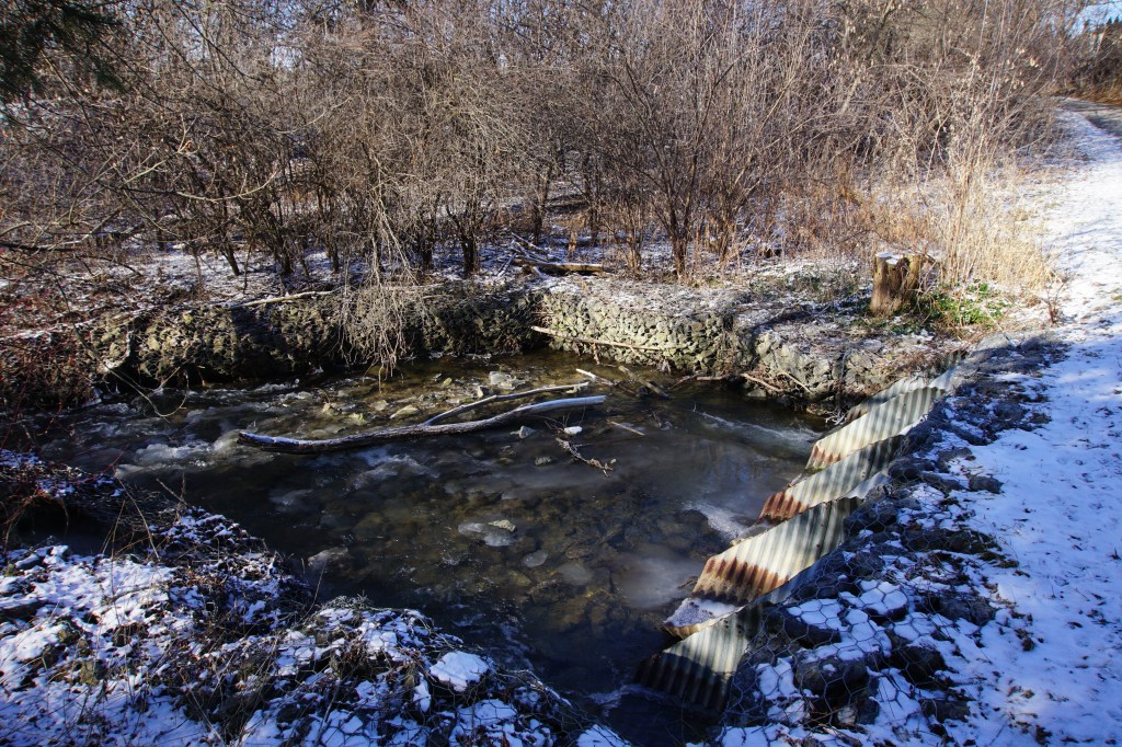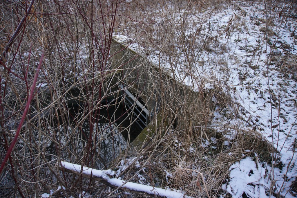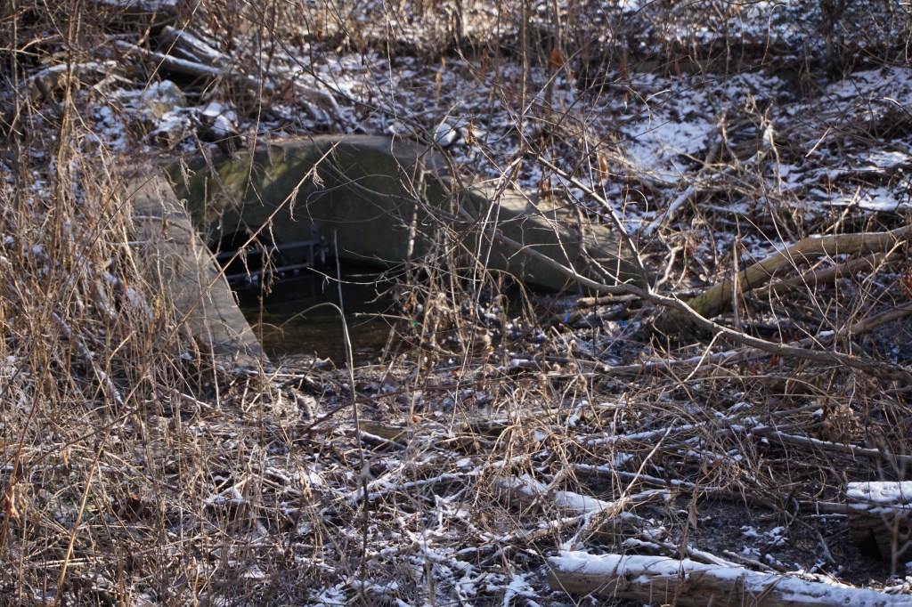Looking at the first close up photo of the earth filled culvert with the small tree growing at its entrance and then the second photo with a wider view, note how the land on each side of the creek appears equal in height. I’d suspect there may have once been a bridge crossing the creek at this point.
