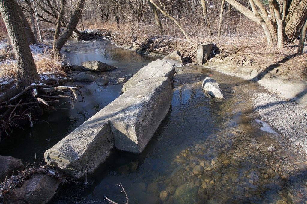 Other structures we see and I hadn’t realized their purpose until recently are these access points to inspect and monitor the sanitary drains running underneath the creek. The TRCA also monitors the creek bed to ensure the sanitation pipes are not exposed due to water erosion and preventing sewage from being spilled into the creek.
