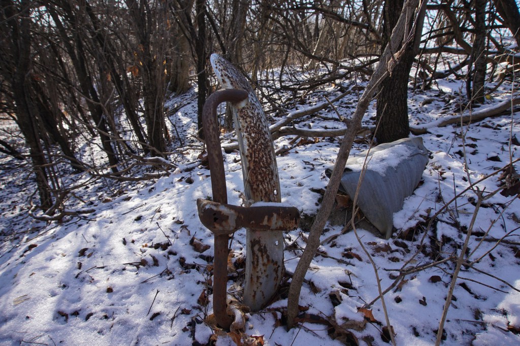 How many have walked past the 1960’s Volkswagen car bumper? It’s next to the ball field. I’ll guess it has been buried like that for at least 50 years. Approximately the amount of time this subdivision’s construction would have started.  I can see other materials are also partially exposed here so who knows, the rest of the car may be just below the surface!