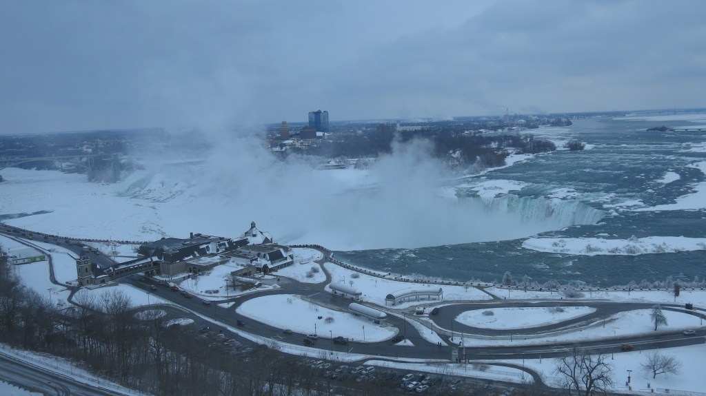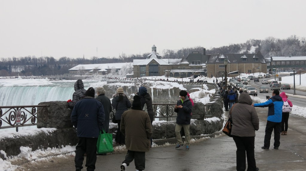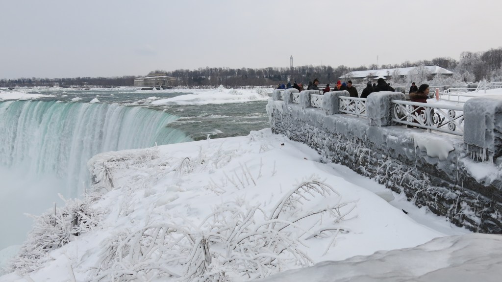 -15 Celsius on this day. Add in the mist from the falls and wind chill = cold. It does make for a scenic winter wonderland.