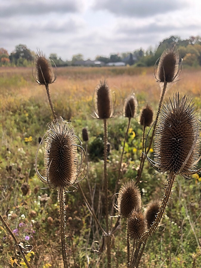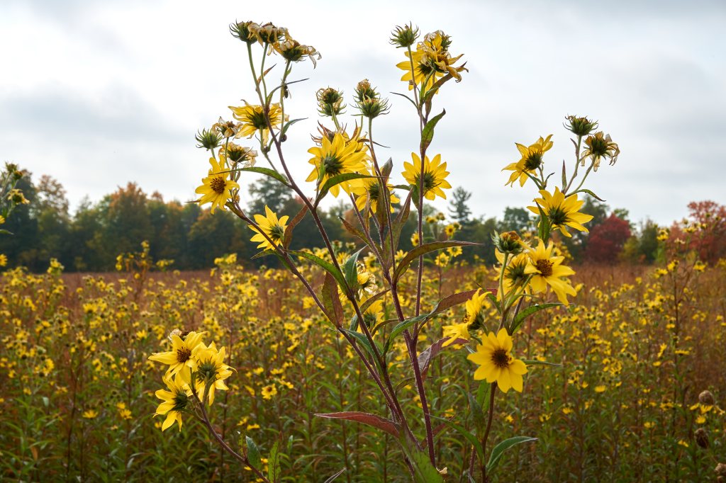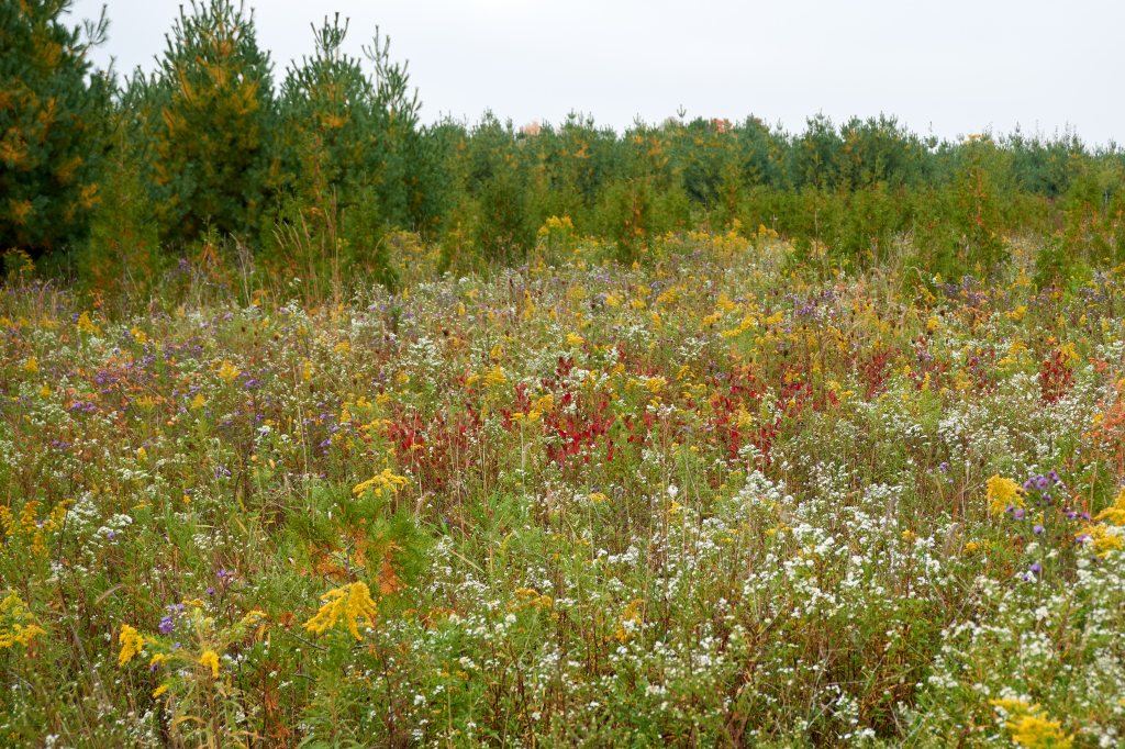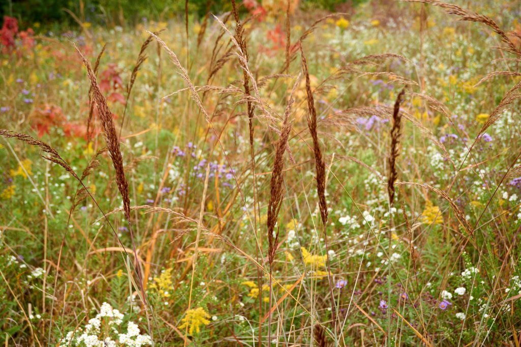 Leaving the forest setting a paved trails cuts through open landscapes filled with colour. A selection of wildflowers, tall grasses and trees have been planted as part of the land restoration work to naturalize former animal pastures. Spring, summer and fall colours attracts native butterflies, bees and birds all the while providing an important food source.