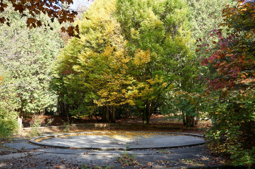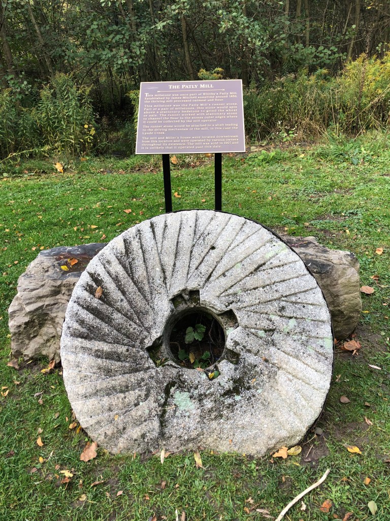 Today as we wander along the remaining pathways and reminisce over the former village grounds, reminders of what used to be here remain visible .  The children’s waterslides and splash pads, the mini putt golf course, the Kissing Bridge and the ancient millstone from Whitby’s Patly mill are embedded in place .