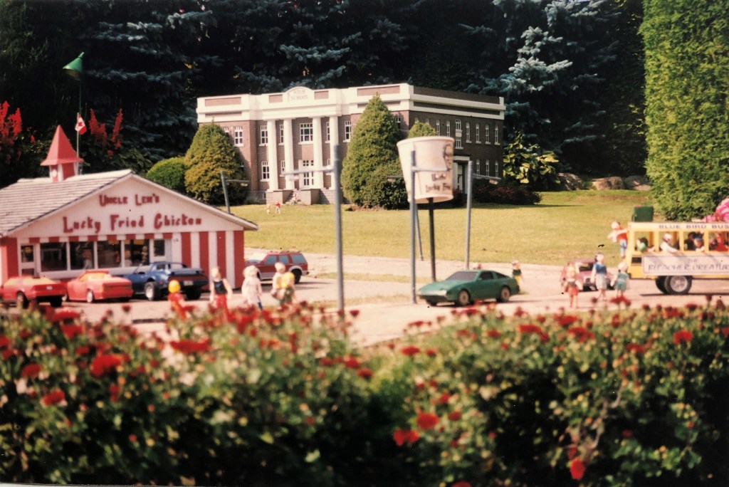 Millions of tourists visited the 1/12th scale world of replicas featuring local homes, farms, businesses and amusement attractions with a 1/25th scale railway display criss-crossing the fractional town. Leonard Cullen’s ideas were proudly presented with vibrantly coloured floral gardens accompanied by the sound of young children’s voices as the backdrop. Meticulously detailed properties were created with lawns and flower beds any homeowner would be proud to call his own.  Downtown streetscapes portrayed Whitby and surrounding points of interest as it was during the 1980s through to the early 2000s with its historic and newest landmarks.