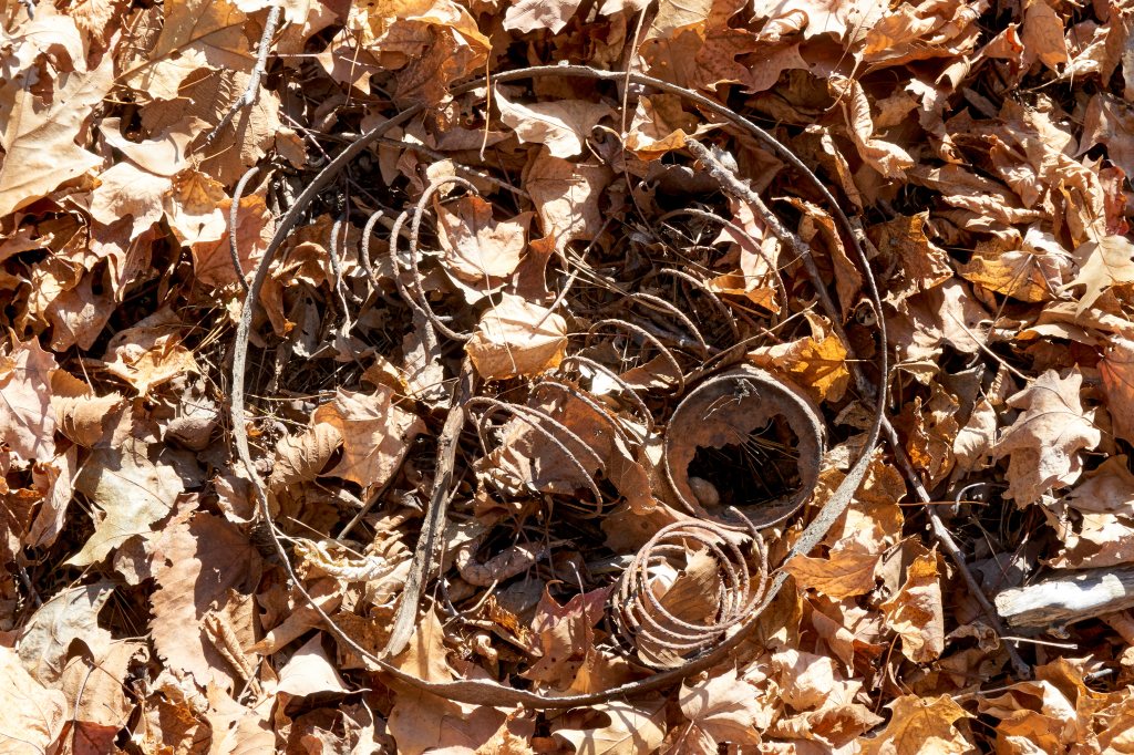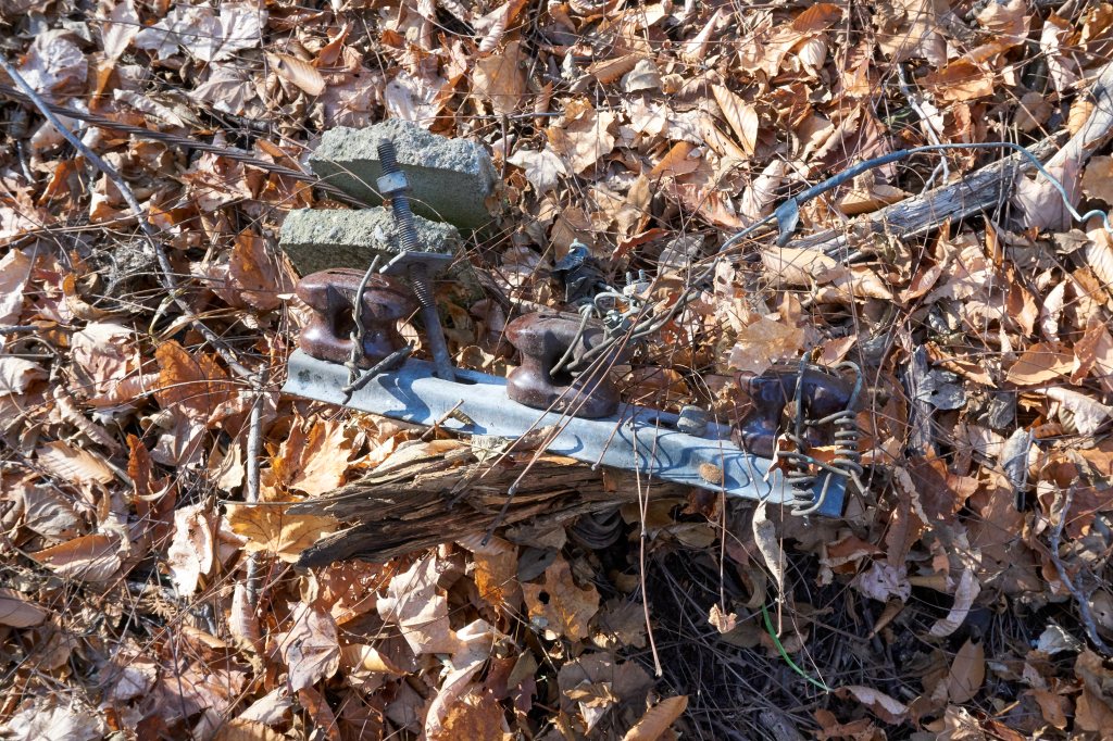At the fork in the path, keep to the right. It takes you away from Little Rouge Creek, and guides you through the center of the Woodland summer cottage properties. The cottages and related infrastructure were all removed after the park closed leaving only some broken cement foundations, telephone poles and deteriorating debris surfacing to ground level. Driveways and property lots have been rendered mostly indistinguishable by the growth of trees over the past 42 years since the park closed. Clues hinting to the park’s former life are best discovered in late autumn, winter before snowfall and early spring.