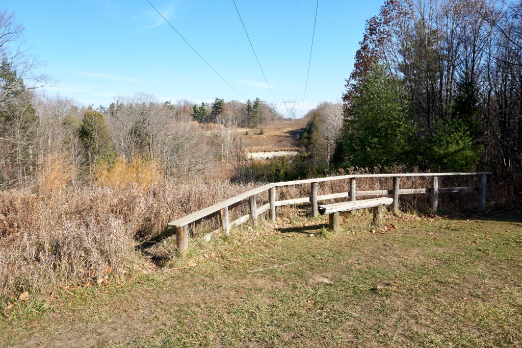 The trail began level with Little Rouge Creek with trees obstructing our sight. It ends here at an elevation of 145 feet above the creek with a clear view to the east. This lookout point was created by retreating glaciers forming a deep, broad cut in the land. Before retracing their steps to the trail head, hikers can rest, listen and watch the flowing creek and possibly catch sight of the next passing train.