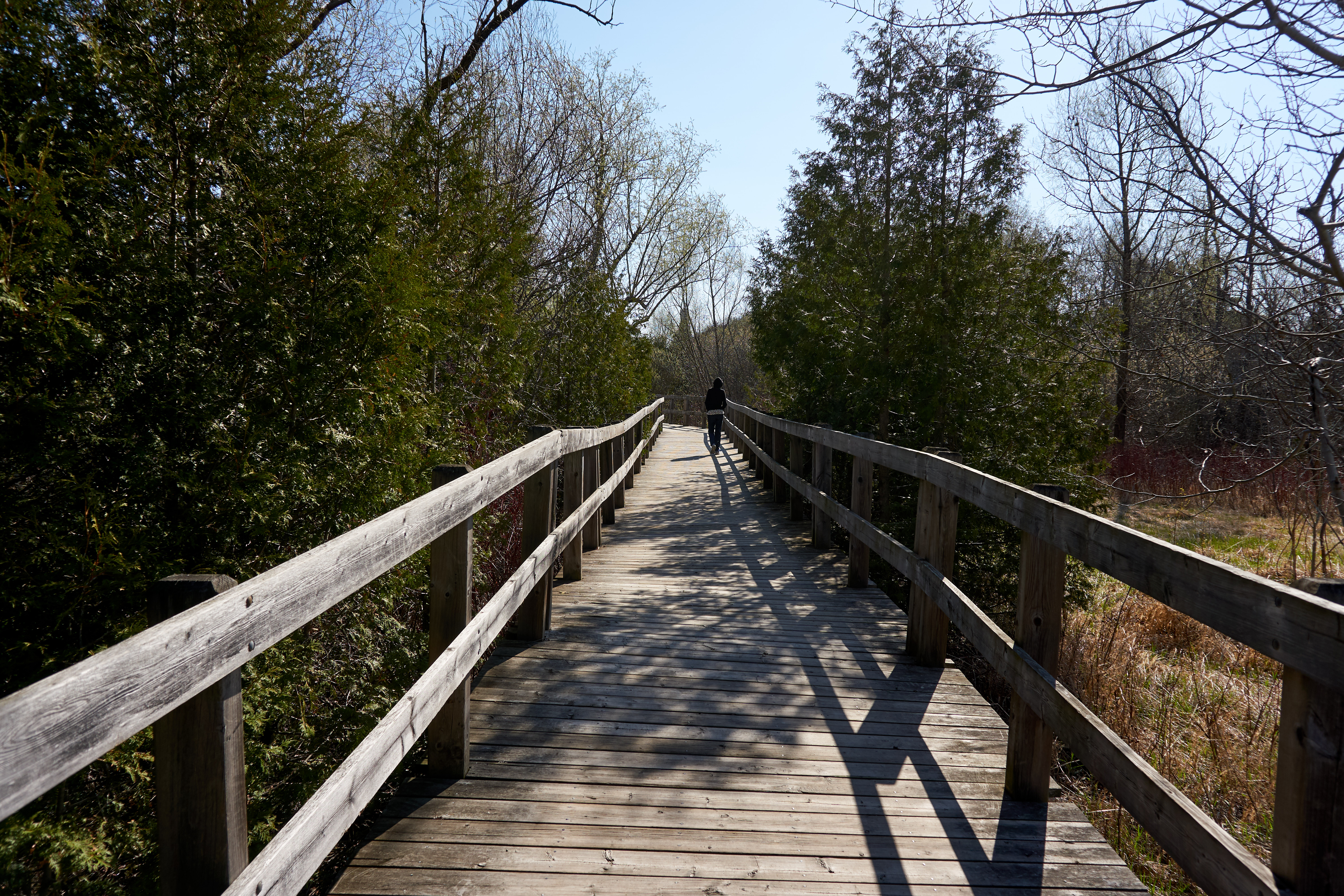 Most people remain on the primary trail for walking or running while more adventurous hikers can veer off on the less travelled side paths down to one or both river valleys. This area, on the Oak Ridges Moraine is a watershed for the Humber, the Don and the Rouge Rivers, all flowing south through the Greater Toronto Area. Two of these three prominent river systems, the Don and Rouge cross the Trans Richmond Trail.