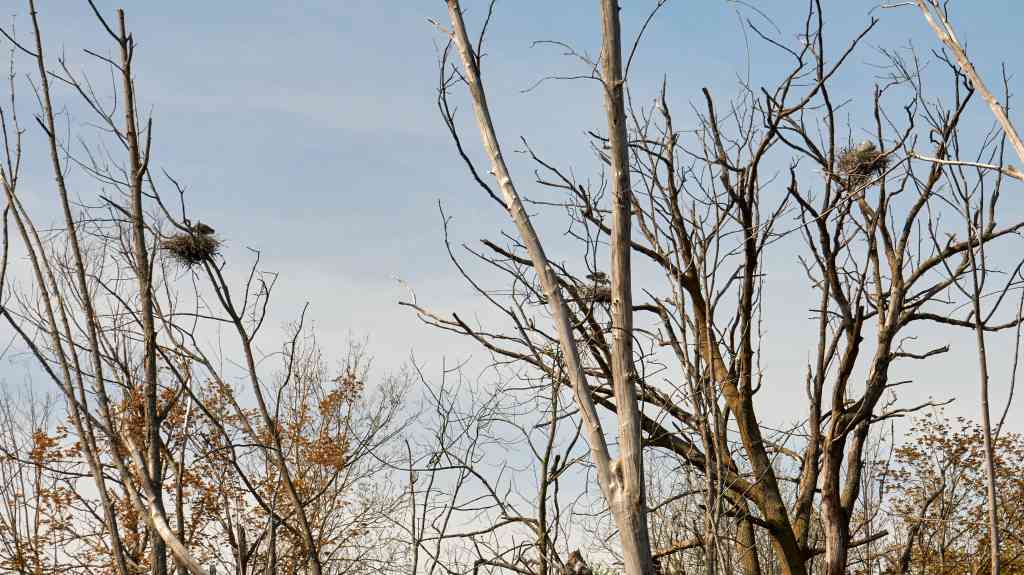 We experienced strong winds and rain a couple of days ago. Maybe the nest wasn’t built strong enough? Maybe a supporting branch broke? After all these are rotting trees. Could a predator have seized on an opportunity?